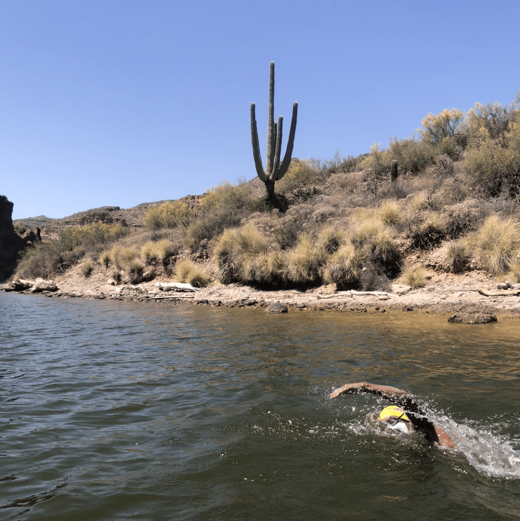 On an 80-degree morning, a group of world-class swimmers stood in their Speedos and swim caps on a pebbly beach east of Phoenix. They gathered on April 25 on the shore of Saguaro Lake to compete in the SCAR Swim, a four-day, 40-mile open water race across four lakes along the Salt River in Central Arizona: the Saguaro, Canyon, Apache and Roosevelt.
